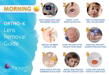 Redesigned a laminated, waterproof double-sided card (one side for application, one for removal) with clear visuals, simple language, and a QR code linking to instructional videos. The design was adapted from Paragon to CooperVision’s watercolor brand style.