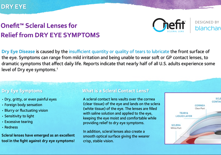 The existing Onefit™ scleral and irregular cornea postcards needed a visual and strategic refresh to better communicate key conditions—Dry Eye, Keratoconus, and Presbyopia—while aligning with CooperVision’s updated brand identity. The previous materials felt dated and disconnected from the new look and tone of the global brand.